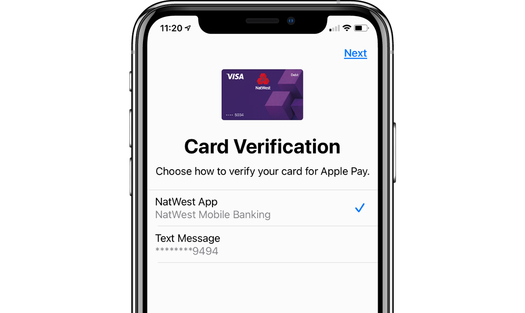 Choose our mobile app to verify your card. Then tap 'Verify'.