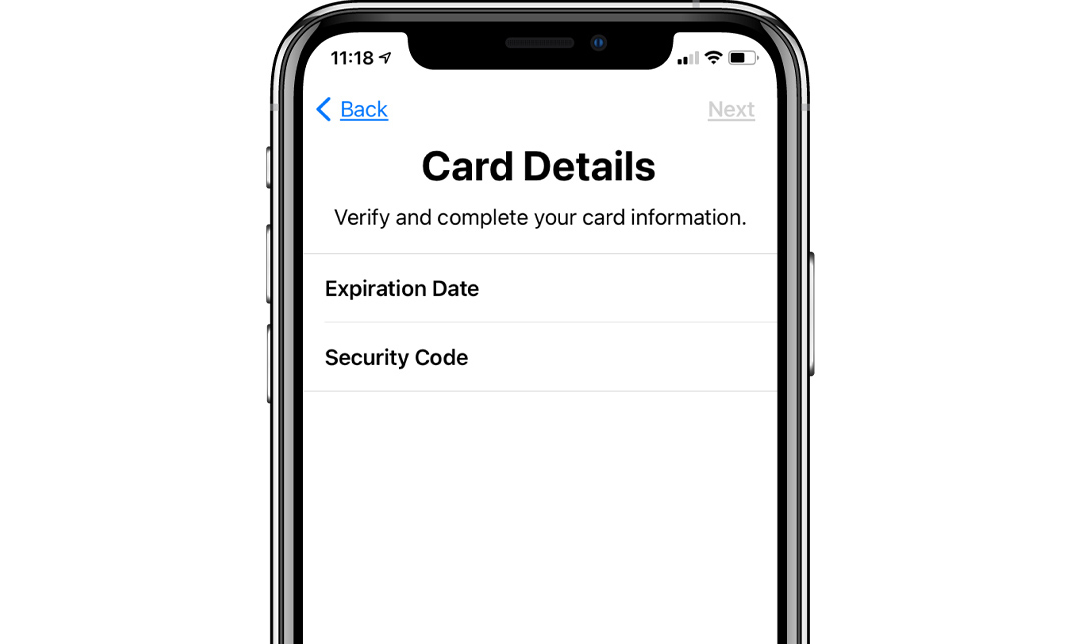 Next use your iPhone camera to capture your card details. If you prefer you can input your card number manually. Confirm your details and click 'Next'.