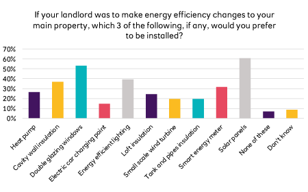 Top of the wish list were solar panels, which were selected by 61% of renters that are currently living in a property without them. They were followed by double-glazed windows (53%) and energy efficient lighting (39%).