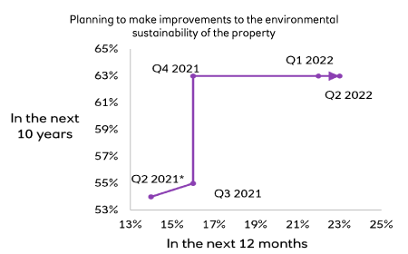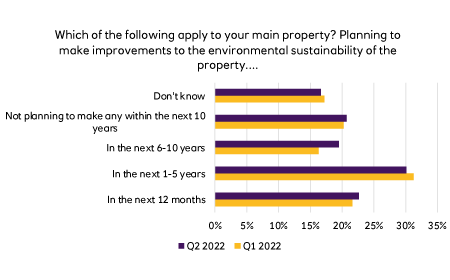 In fact, of the features surveyed, only double-glazed windows has seen a reduction in its perceived importance over the past 12 months, with the proportion of those saying that it is essential dropping from 42% in June 2021 to 35% in Q2 2022 (although this was still the highest overall).